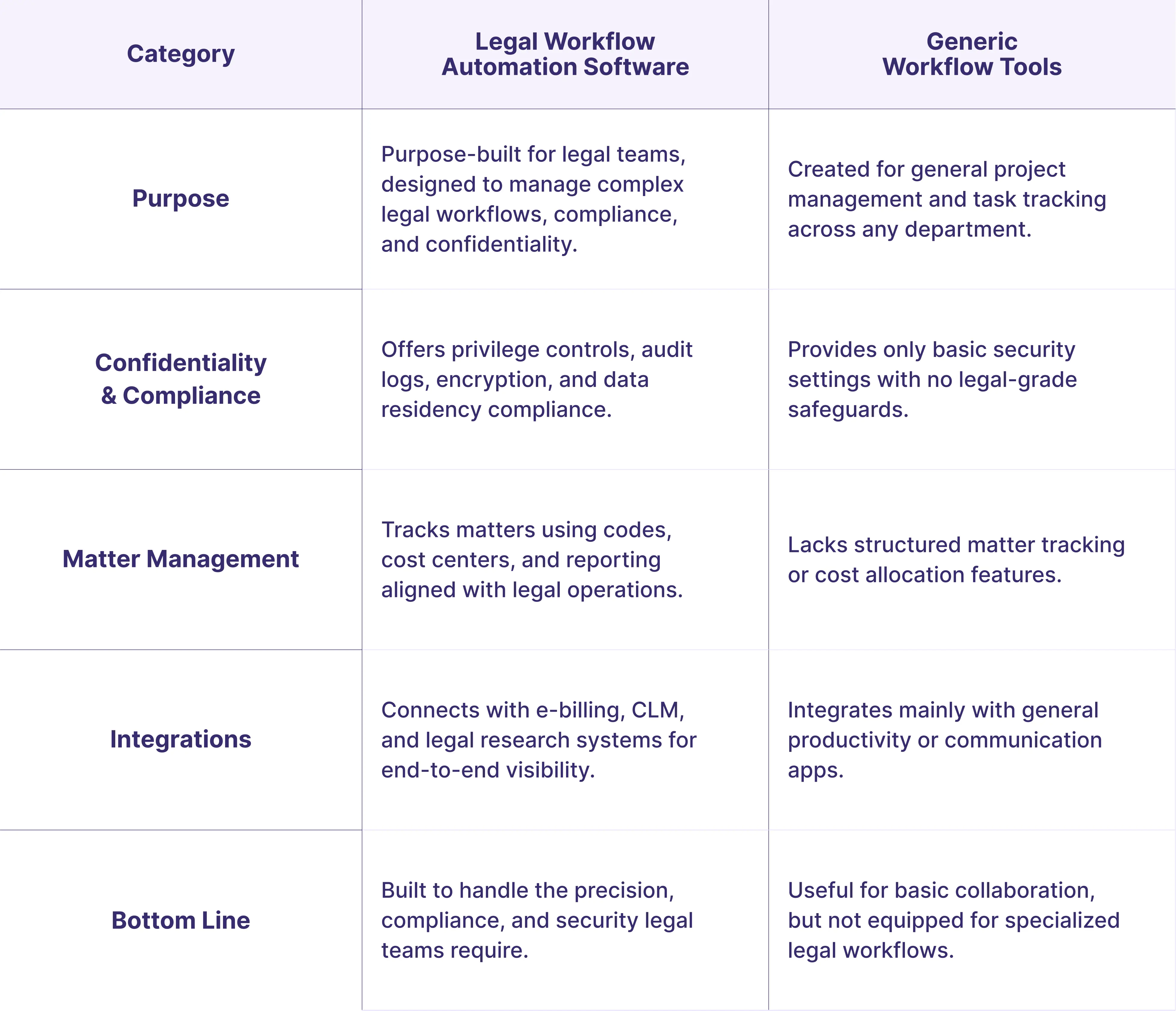 Generic workflow tools might seem like an easy solution for legal teams looking to automate processes. After all, platforms like Monday.com, Asana, or Trello handle task management and team collaboration well. Yet legal departments often discover these tools fall short when managing the unique complexities of legal work.